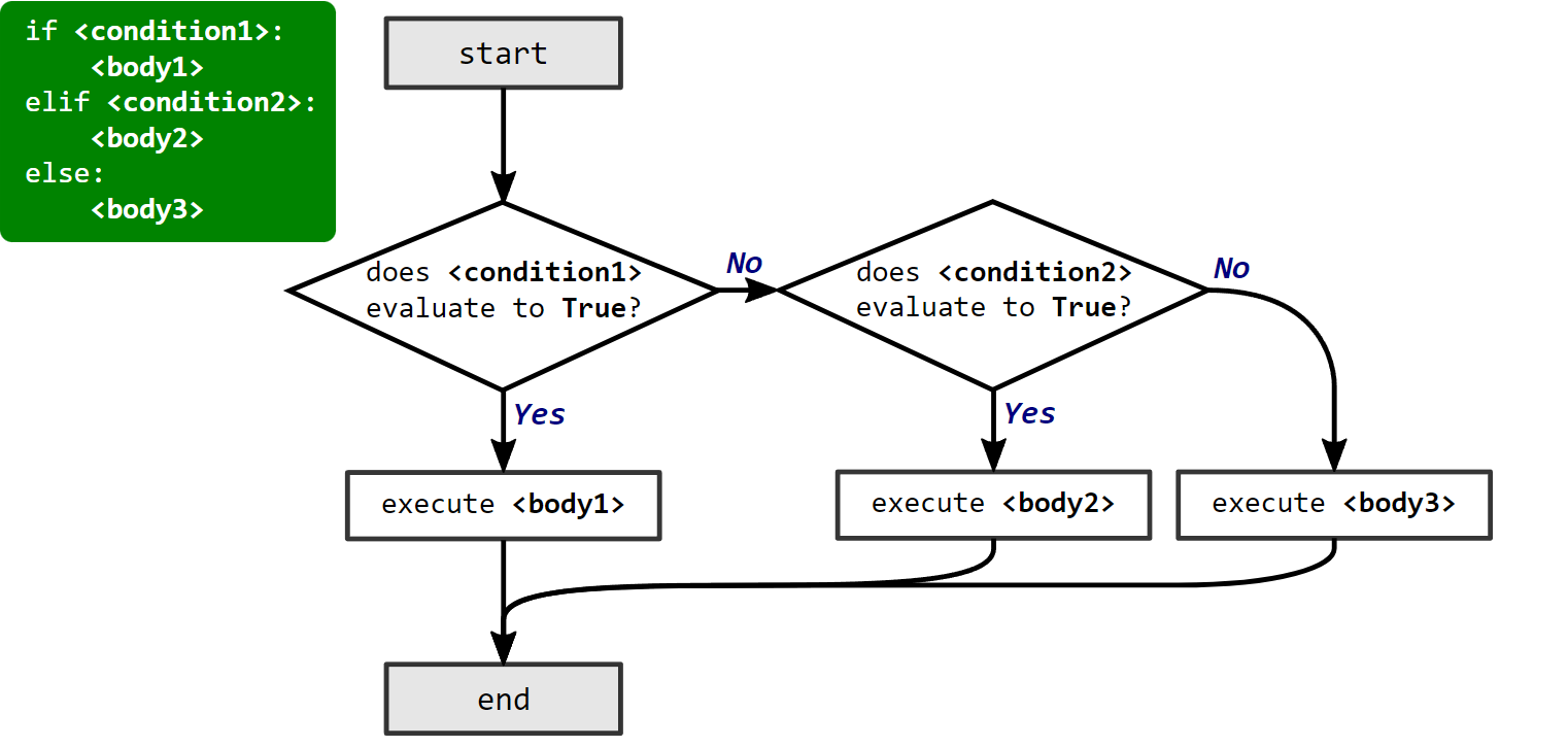 Es decir, puede no existir o pueden existir varios elif. Por otro lado, el else es opcional dependiendo del caso.